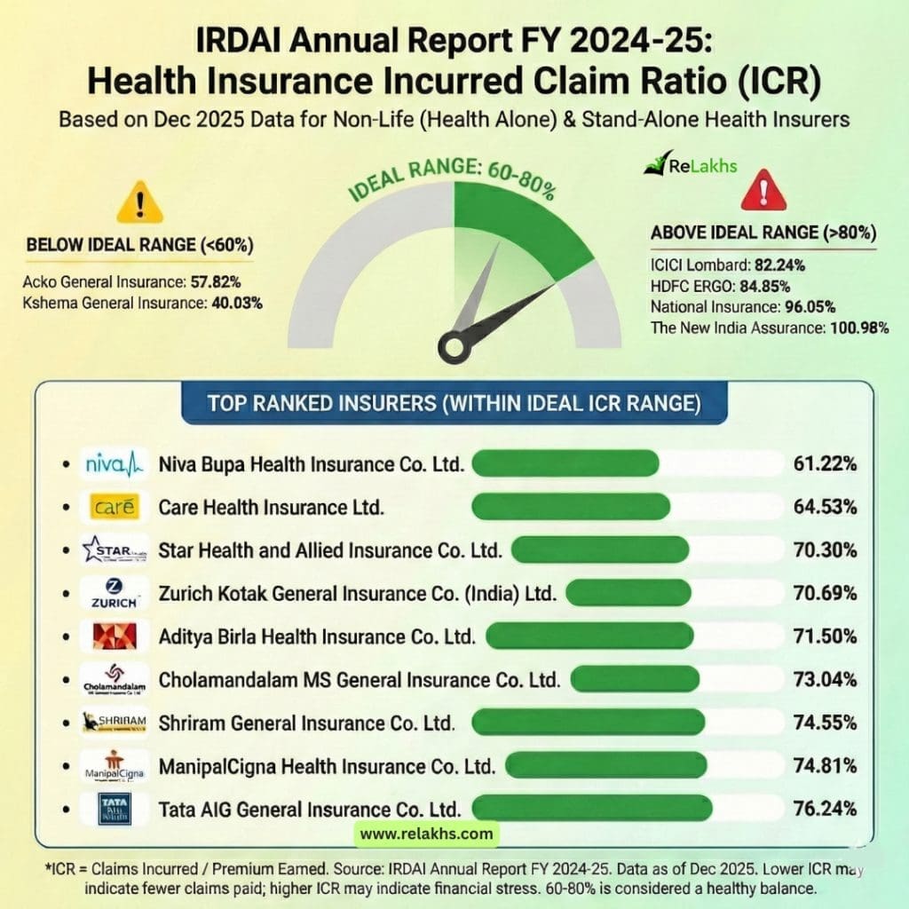 Important: IRDAI does not define this as an “ideal” range. It is a general market convention, not a regulatory benchmark.