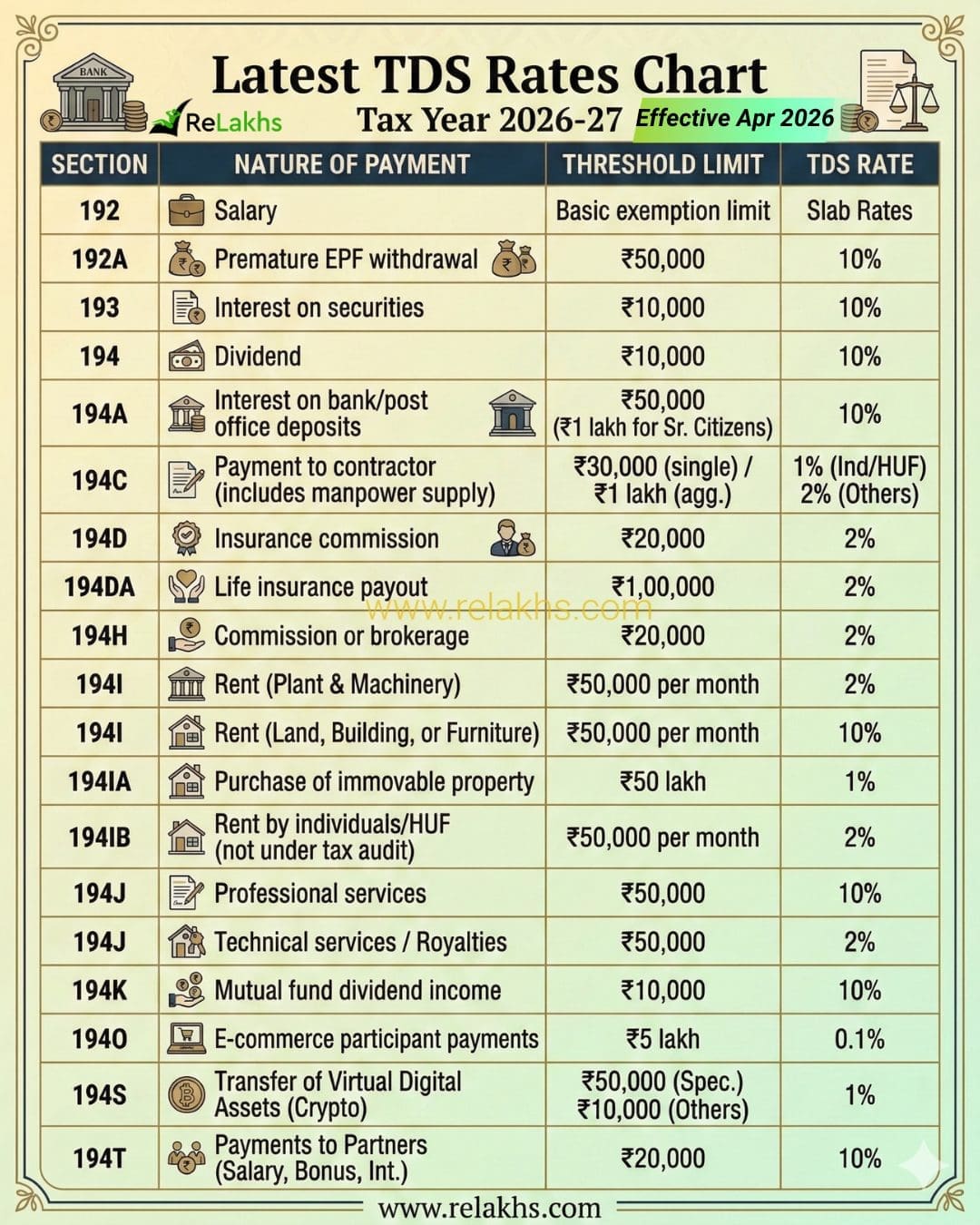 Latest TDS Rate Chart for Tax Year 2026-27